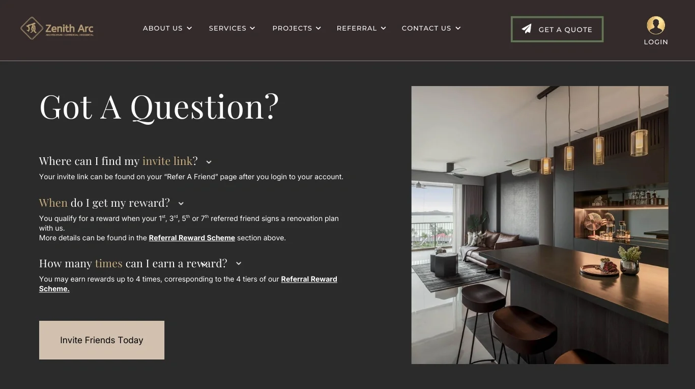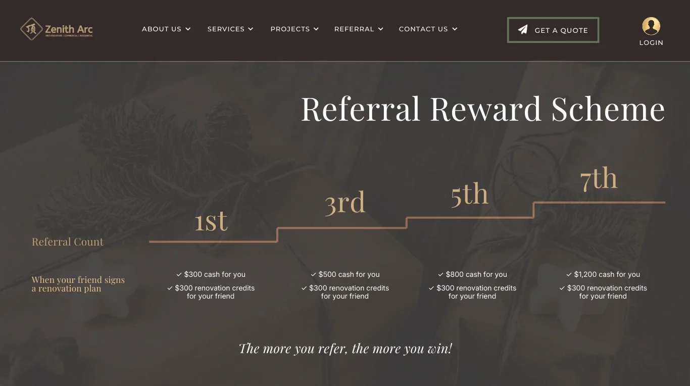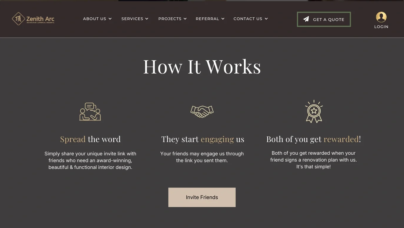 I created a dedicated page for “Referral” on Zenith Arc’s website to highlight the importance of the program.